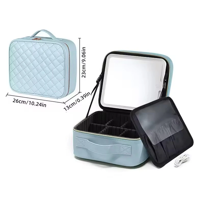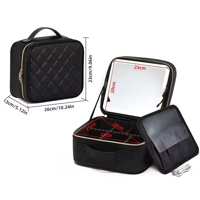 Trousse de toilette professionnelle avec miroir LED intégré et 3 modes d’éclairage. Organisation optimale, compartiments zonés et finition matelassée élégante. Le compagnon beauté indispensable pour vos déplacements.
